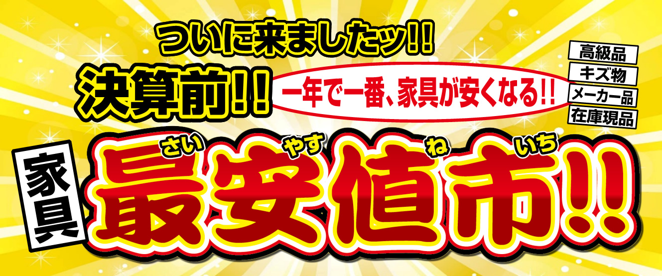ついに来ました!決算前!家具の最安値市!(さいやすねいち)