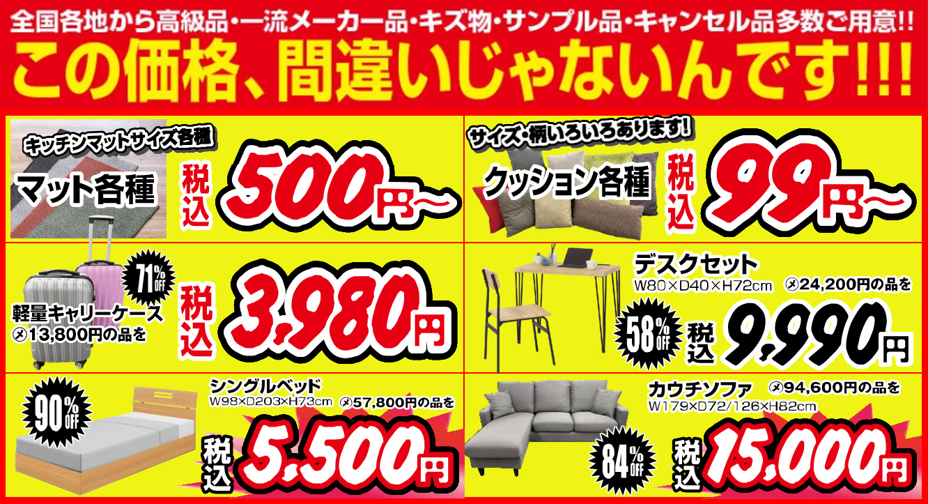 ええ⁉と驚愕する激安限定品沢山出します!期間中は高級家具・ブランド家具も最低価格保証!