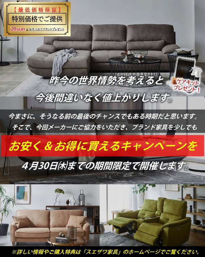 実は今、家具業界も例外なく昨今の世界情勢によって原材料が高騰し、各ブランド・メーカー【値上げ】するかしないか瀬戸際に立たされています(-_-;)